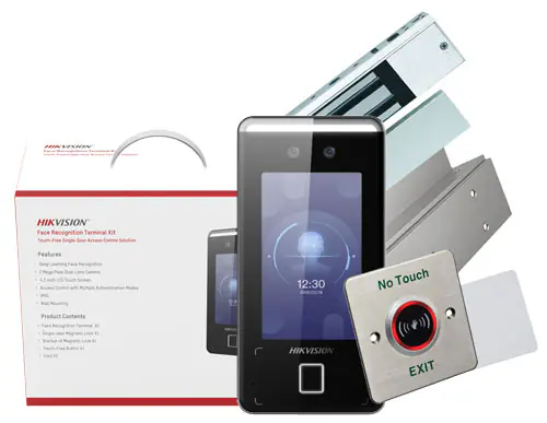 KIT DE RECONOCIMIENTO FACIAL INCLUYE: DS-K1T341AMF TERMINAL DE RECONOCIMIENTO, DS-K4H258S CHAPA MAGNÉTICA, DS-K4H258-LZ BRACKET, DS-K7P03 BOTÓN DE SALIDA Y TARJETAS FM11RF08-M1/ 3,000 ROSTROS / COMPATIBLE CON APP HIKCONNECT / VIDEOPORTERO.